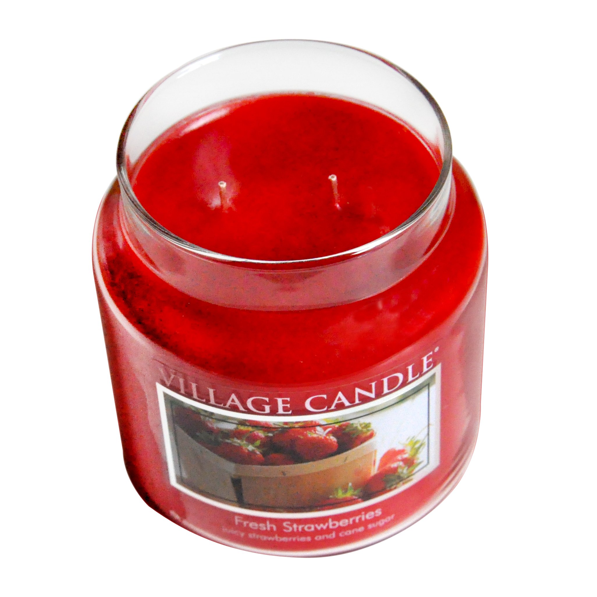 Village Candle Fresh Strawberries 16 oz Glass Jar Scented Candle, Medium